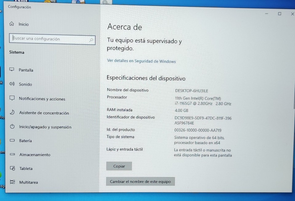 1) En tu computadora, click en Inicio, escribís "Equipo" y en "Este equipo" click derecho -> Propiedades (te va a aparecer una ventana como la que ves abajo)
